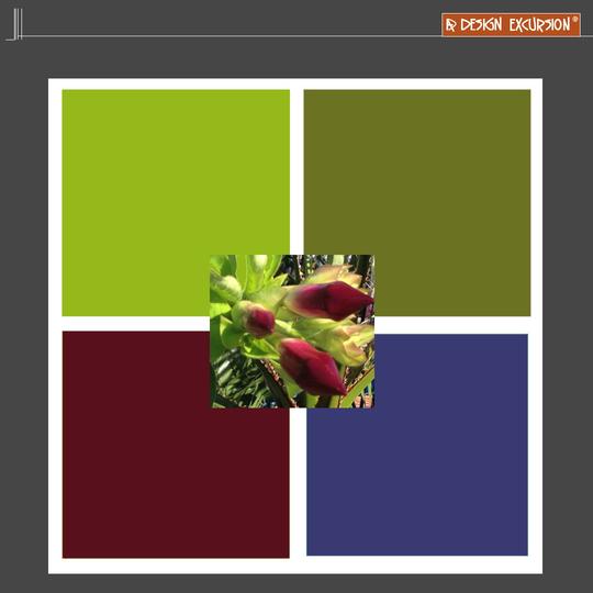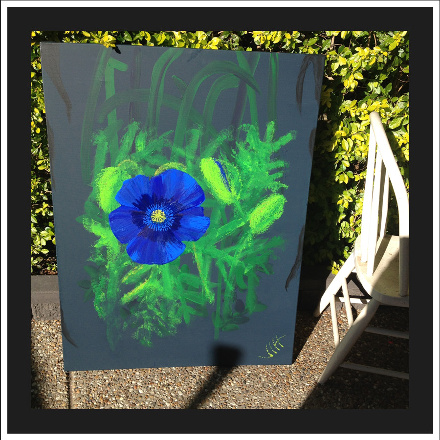 Jeanene has used lime green to contrast against the darker green background, and the blue poppy