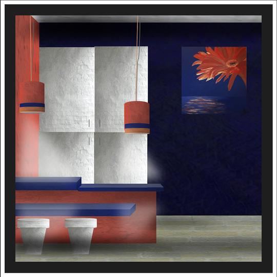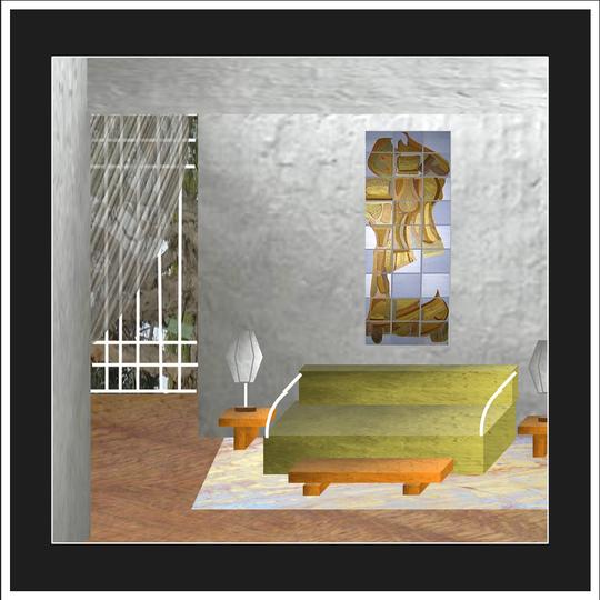 Add impact lighting, and focal artwork, and a little textured pale pink, mauve or citrone