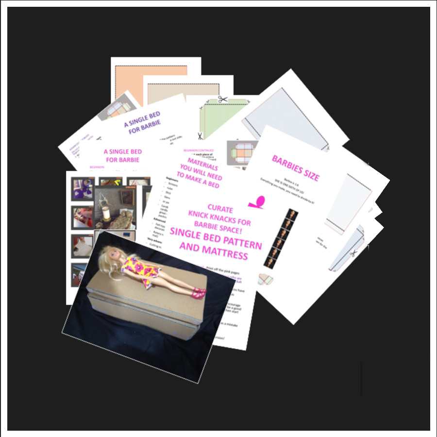 We have created a bed and mattress pattern for Barbie sized doll. It is a pdf file which can be printed on A4 sheets. Please contact us with the pattern you would like us to email you for free