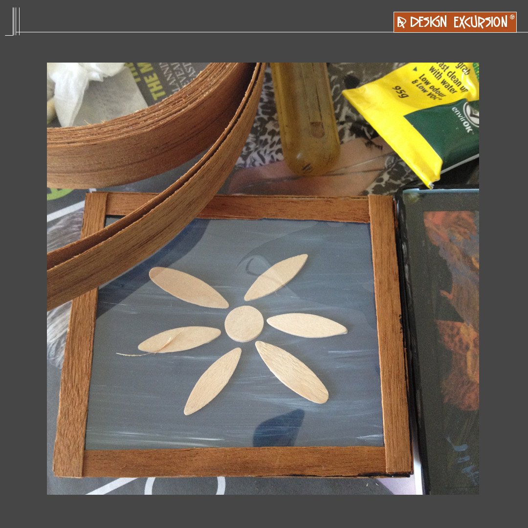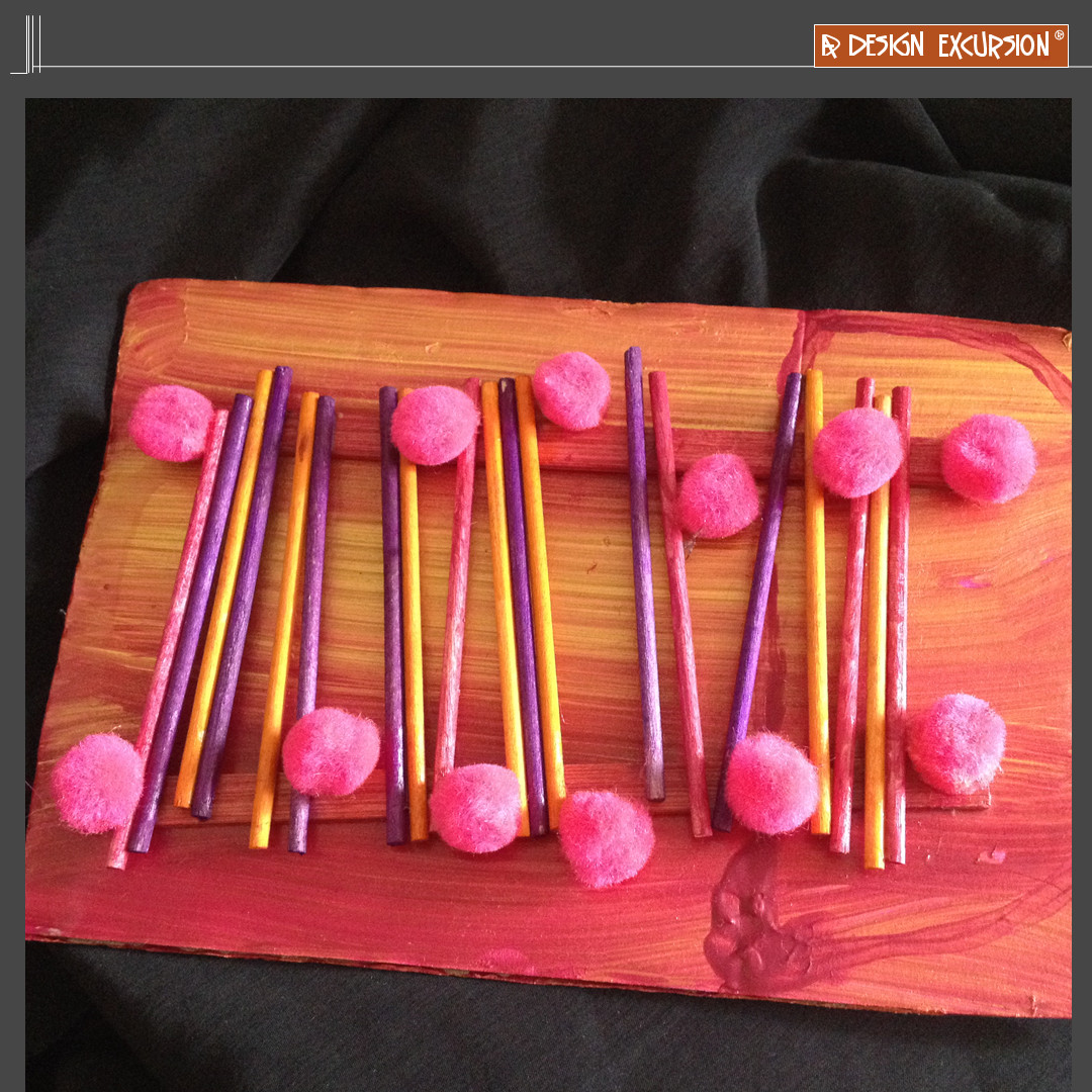 We glued together paddle pop sticks - braced behind to make a bleached timber mat, then used yellows with contrasting black and white pieces.