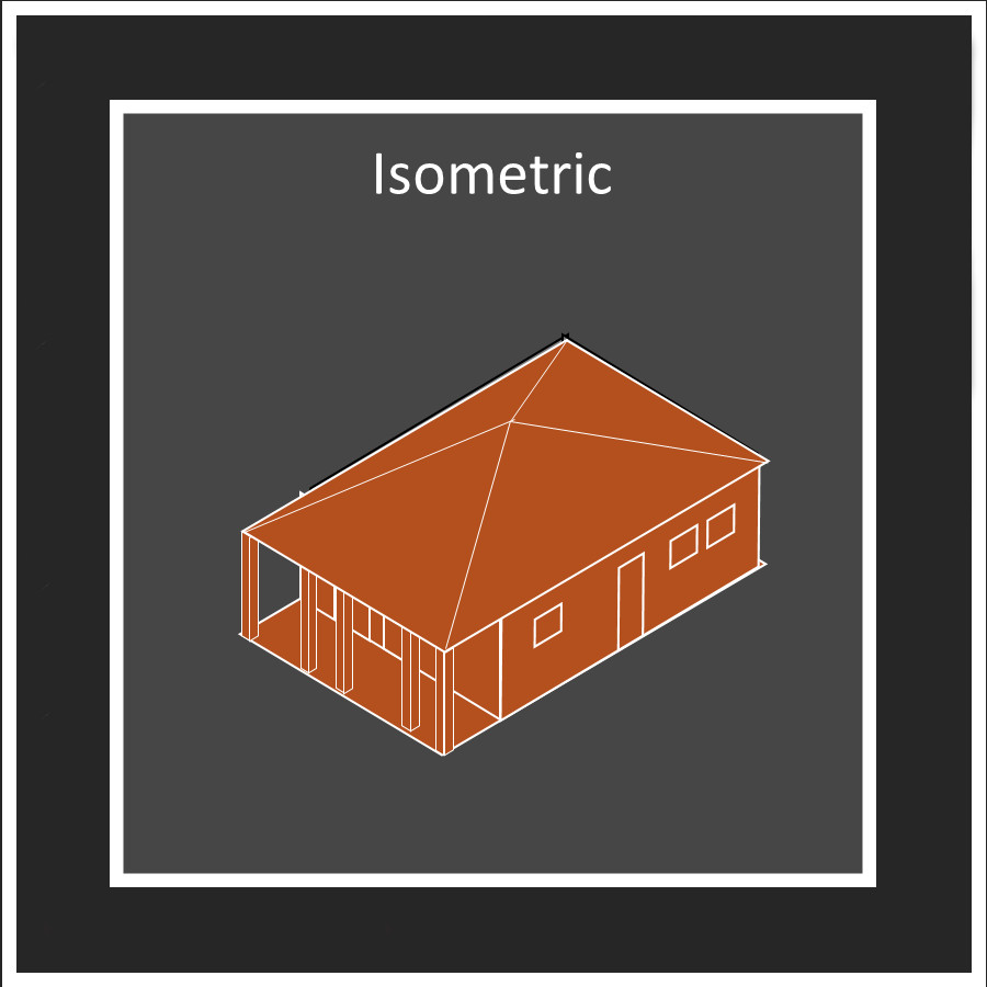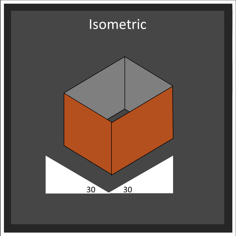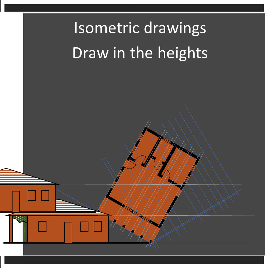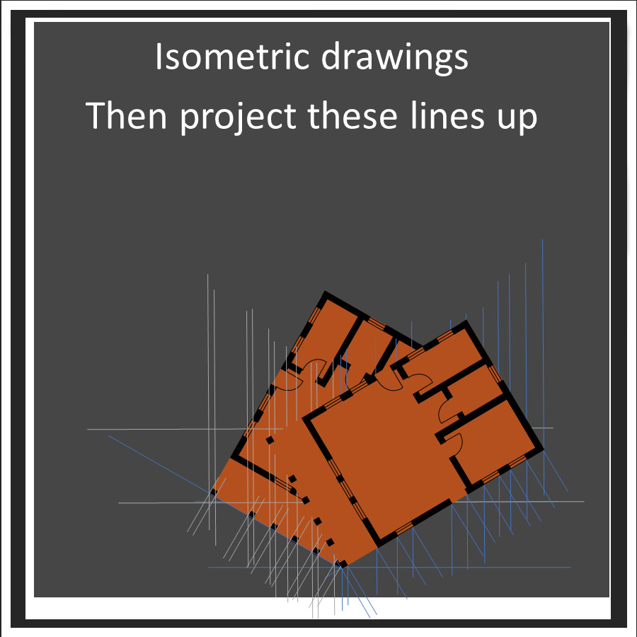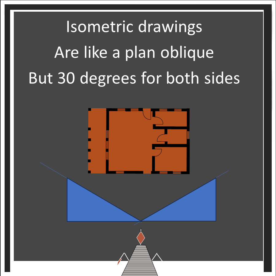 To draw one, start with the plan. Draw 2 lines at 30 degrees on each side