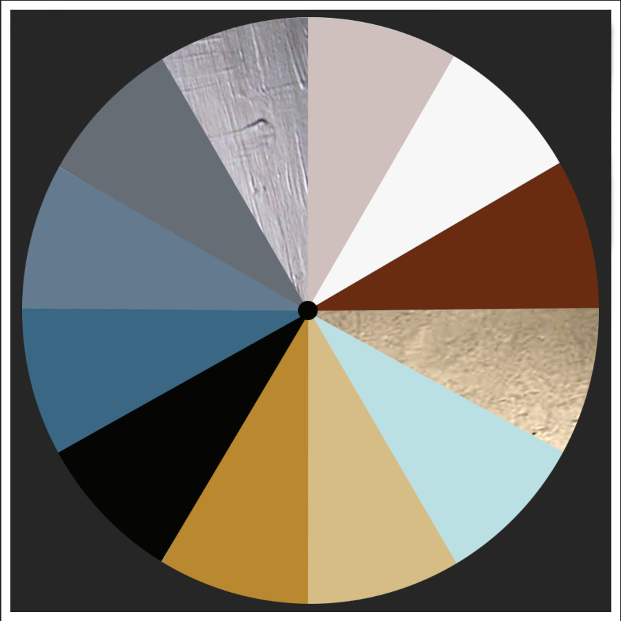 Cool blues and greys with metallic accents (silver, chrome) and black and white contrasts.