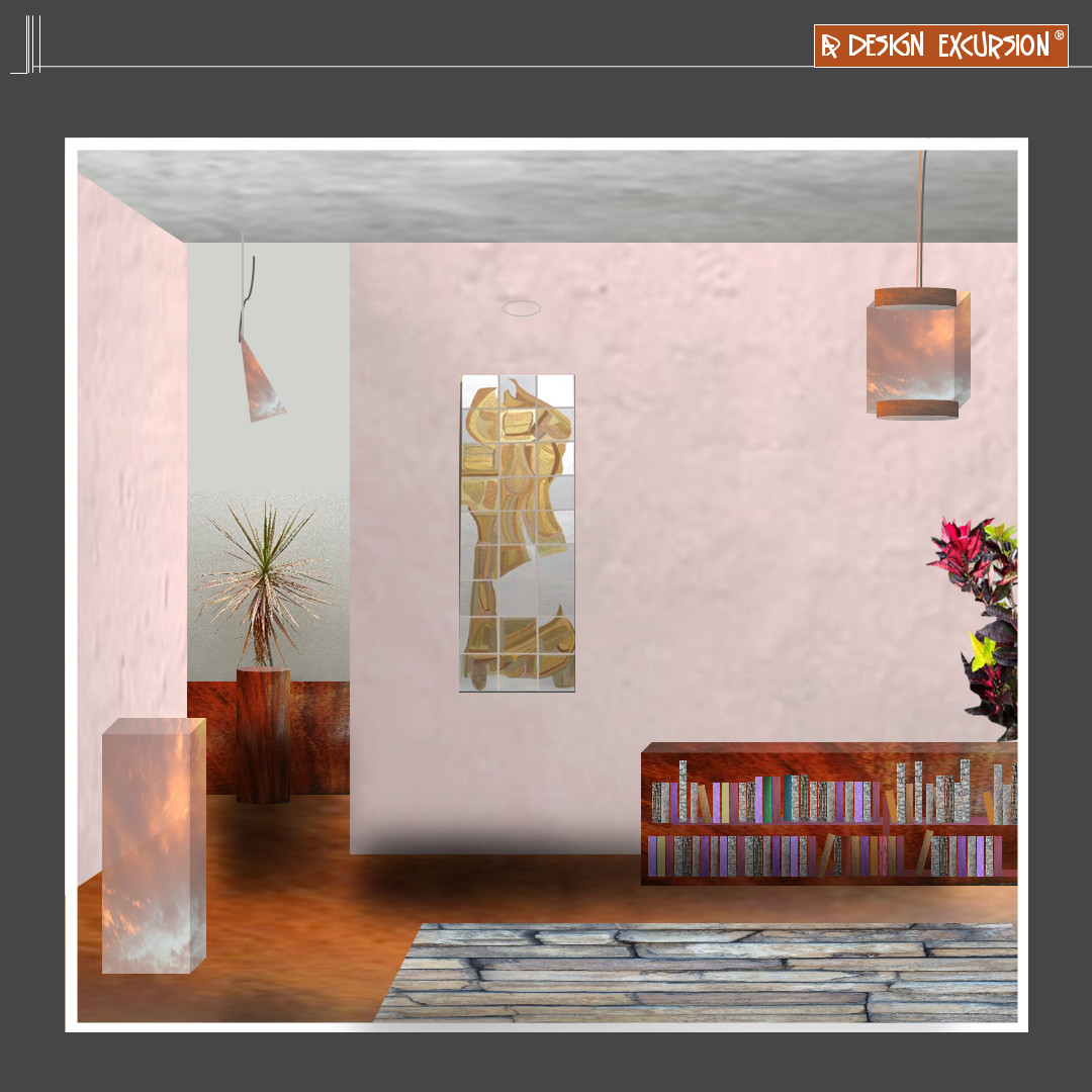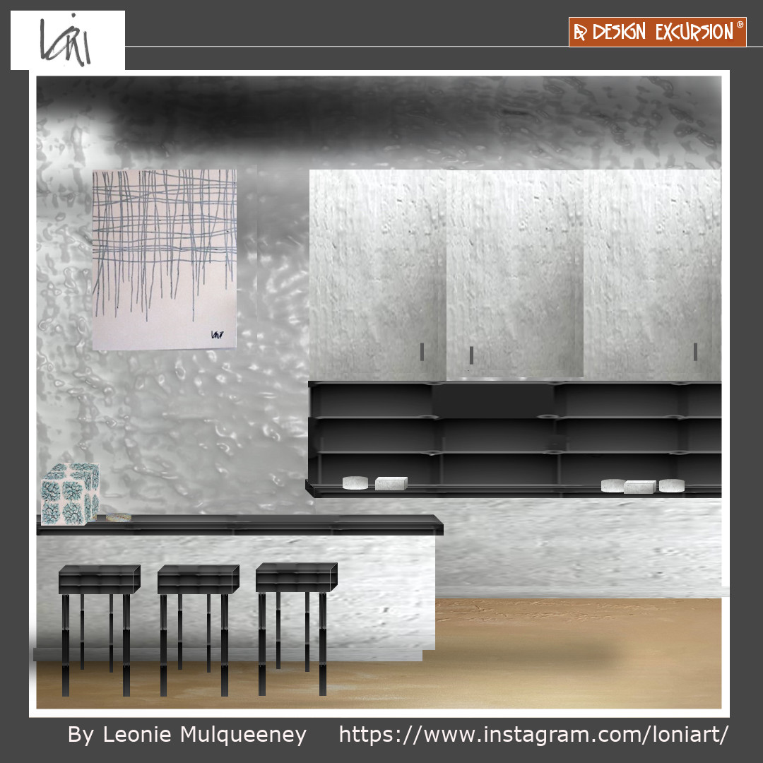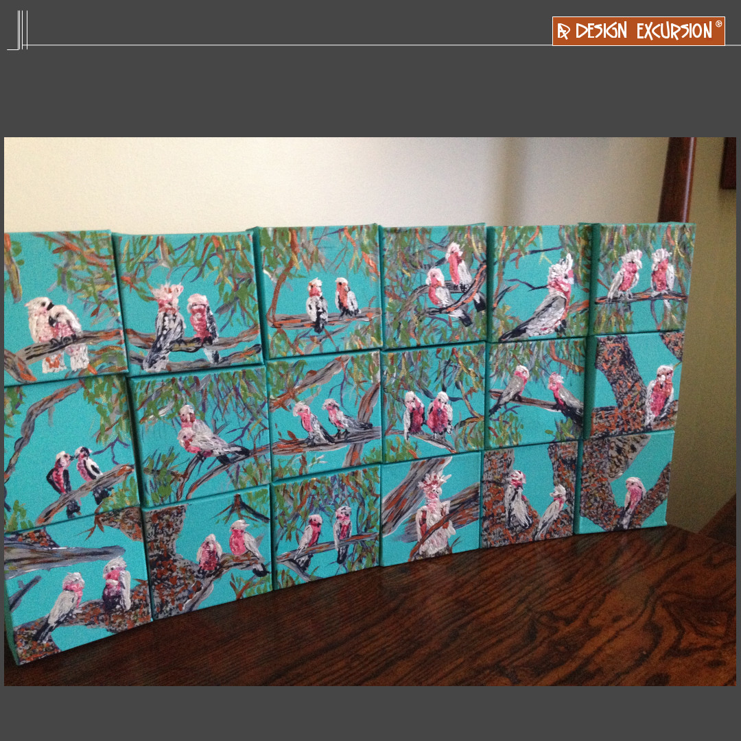 Jeanene's squares in her artwork complement the cubes in this space, bringing a stable feel.